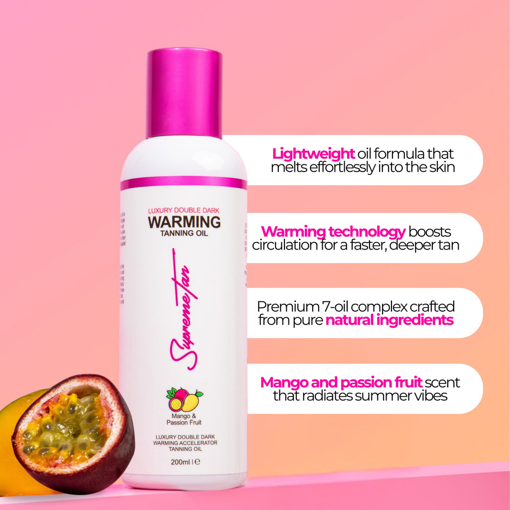 Designed to help you reach a deeper tan quickly. This formula includes Sweet Almond Oil, Olive Fruit Oil, Coconut Oil, Vitamin E and Collagen to keep the skin feeling conditioned throughout your tanning sessions. Ideal for both sunbeds and natural sunlight.