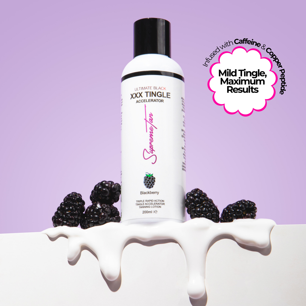 Infused with Tyrosine, Carrot Seed Oil, Shea Butter, Cocoa Butter, Avocado Oil, Copper Peptide and Caffeine which dives into the depths of extreme tanning without the aid of bronzers. Designed to amplify your tanning experience with its unparalleled premium tingle accelerator formula. Suitable for indoor tanning.